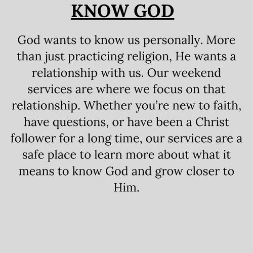 We’re here to help people Know God, Find Freedom, Discover their Purpose, and Make a Difference.