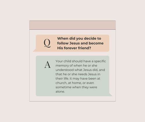 We advise parents to wait until their child is asking to be water baptized. this is usually a good indication that they are ready to be baptized and that it will be a spiritual milestone in their life. While younger children under the age of seven can have a relationship with Jesus, they will not necessarily remember or understand the significance of the event, so we encourage parents to wait for baptism until they are a little older. As you discern if your child is ready to be water baptized, here are some questions to ask your child. The following answers show that your child understands.